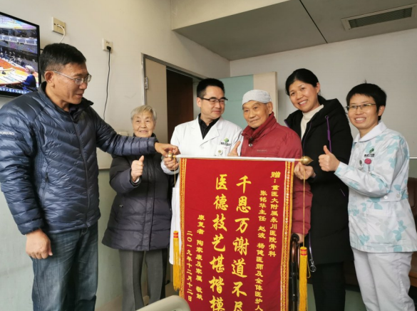 在谈起此次手术时,陶家康老人高兴地说,重医附属永川医院的张铭华医生医术非常不错,我11日下午做的手术,第二天上午就能坐起来,第三天就能直接走路,实在是太了不起了。在住院治疗的这段时间,护士们对我也很照顾,在手术前我便秘,肖瑜护士不怕脏不怕累亲自为我护理,还推送康复视频给我学习,实在是太感谢他们了!